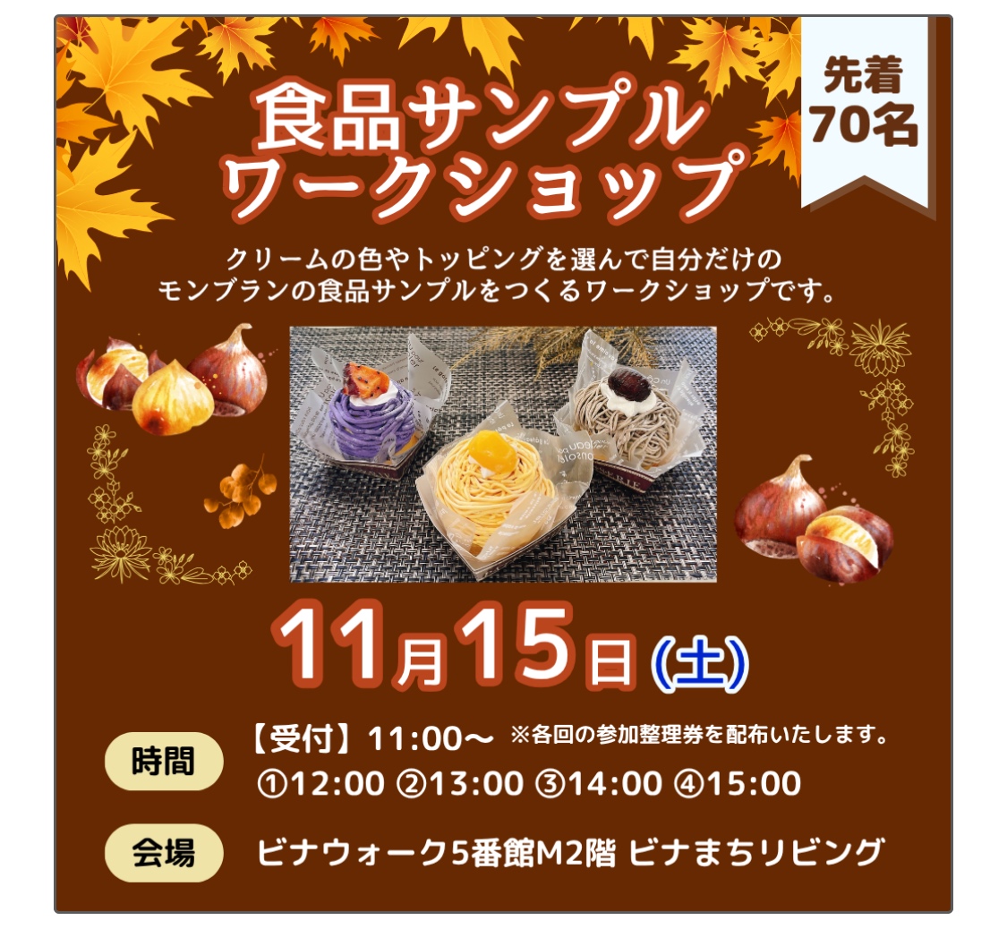 11月15日(土)ビナウォーク(海老名)にて食品サンプルのワークショップを開催します。
